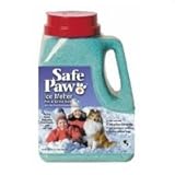 Safe Paw Ice Melt Most ice melters contain dangerous salt that can irritate the sensitive paws and skin of your dog, and even burn their mouths and digestive systems when they try to lick it off. Safe Paw Ice Melt contains NO salt. It's safe to use around kids and pets and melts ice quickly using non-corrosive, 2-way timed-release action. Features: · Contains no salt · Guaranteed safe for dogs and children · Patented dual-effect compound starts melting ice instantly · Recommended by veterinarians, groomers, and humane societies · Awarded PTPA Green Product Seal Item Specifications: Size: 8 lbs. Note - Do not use on concrete less than 12 months old or precast concrete.w Read more